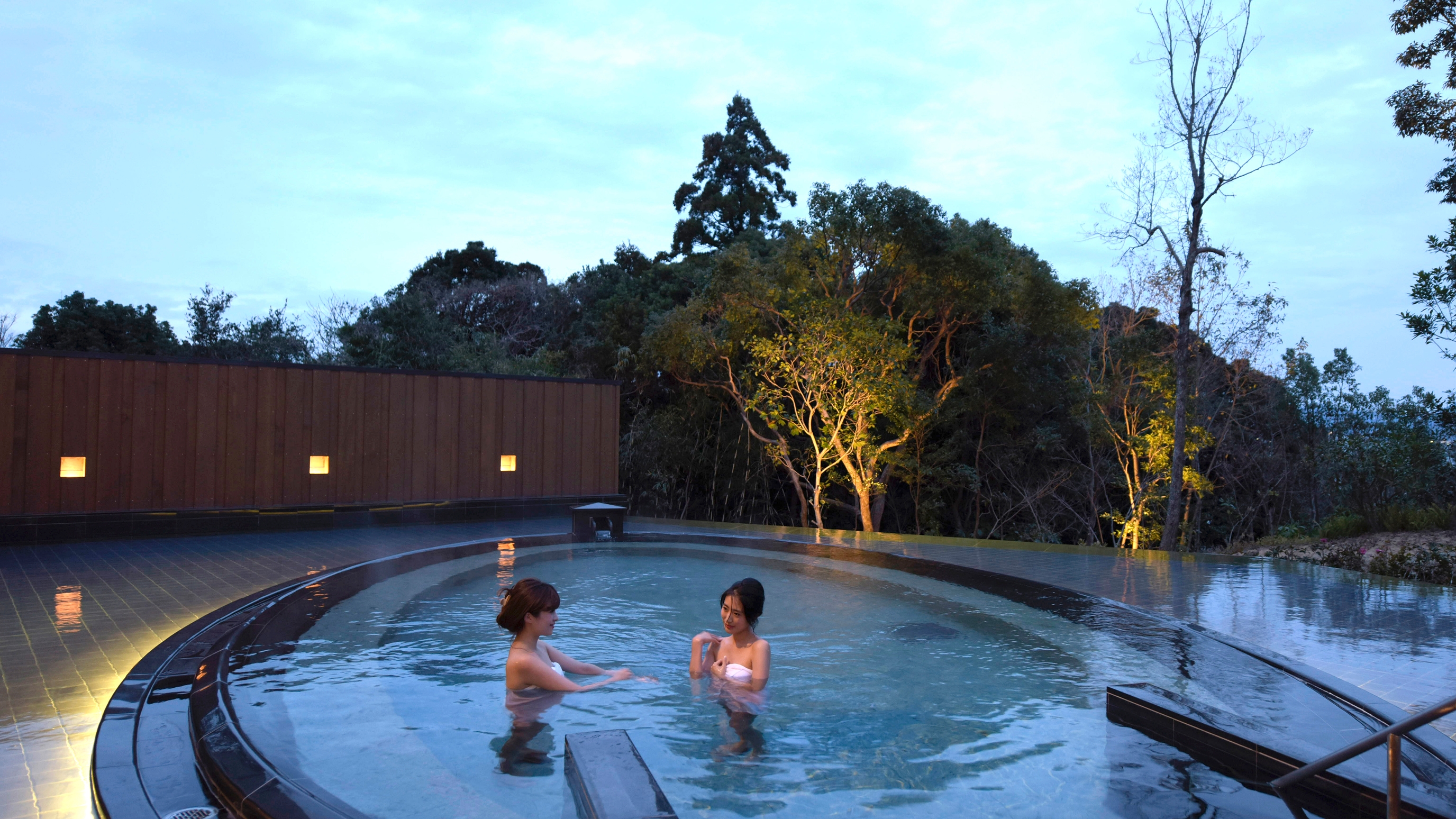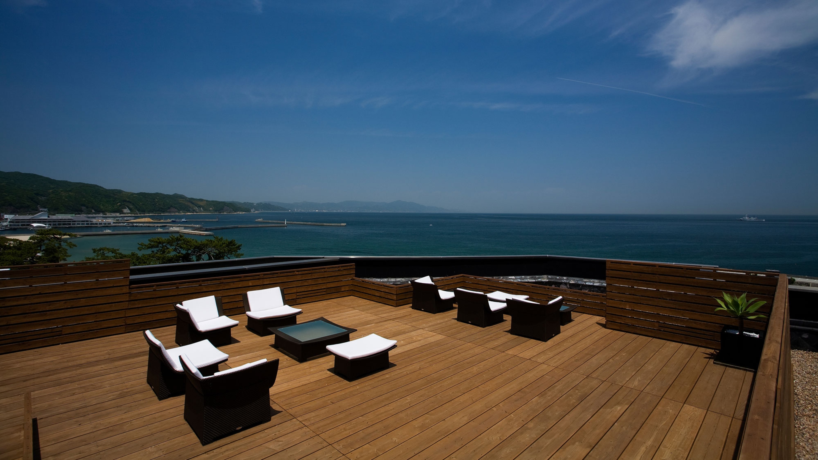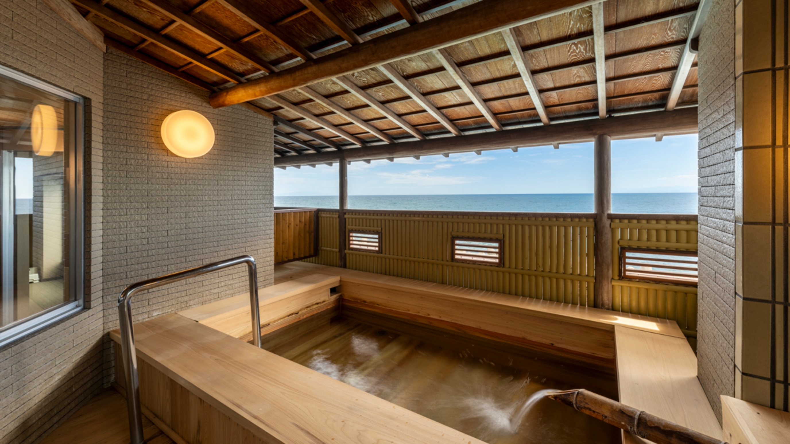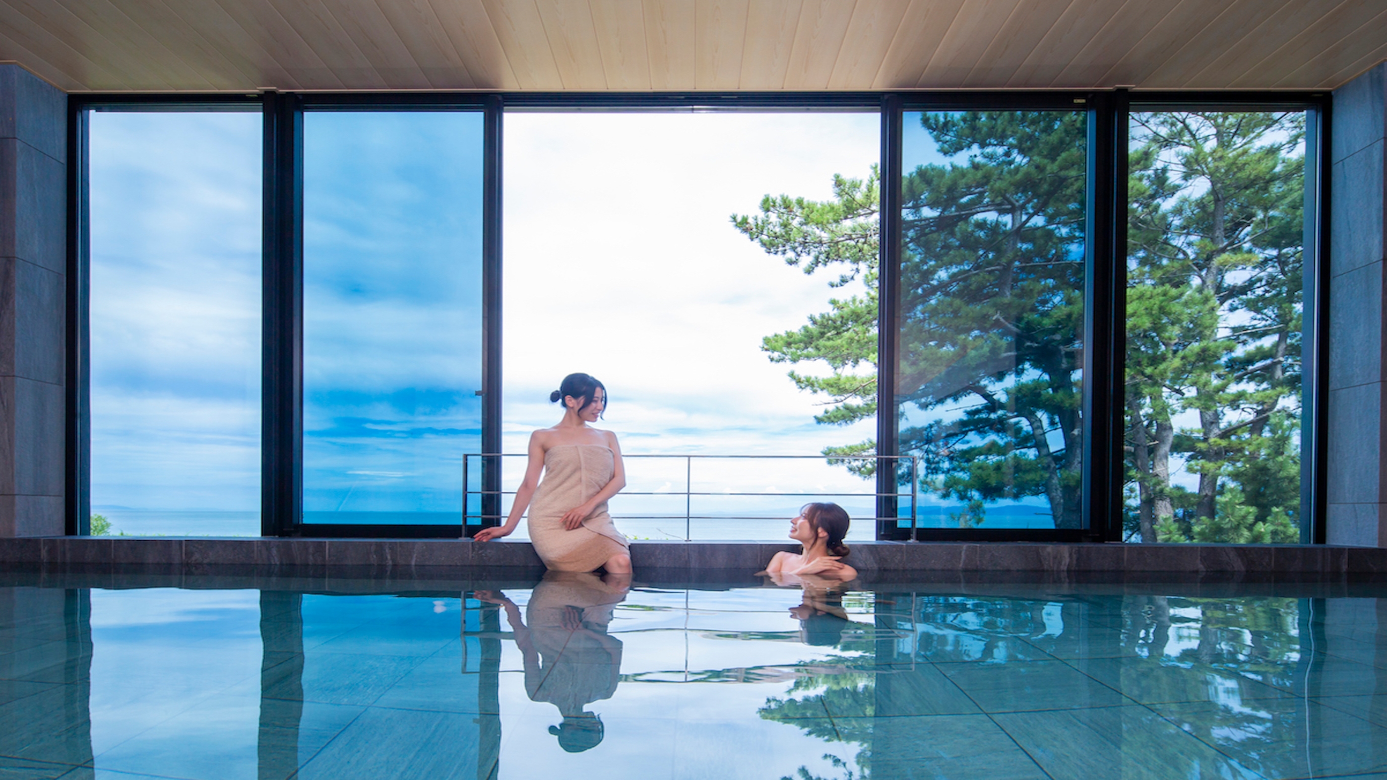 ホテル最上階の温泉大浴場の露天風呂からは、太平洋の絶景を眺めながら入浴でき、ご家族連れのお客さまにおすすめの貸切温泉も完備しています。