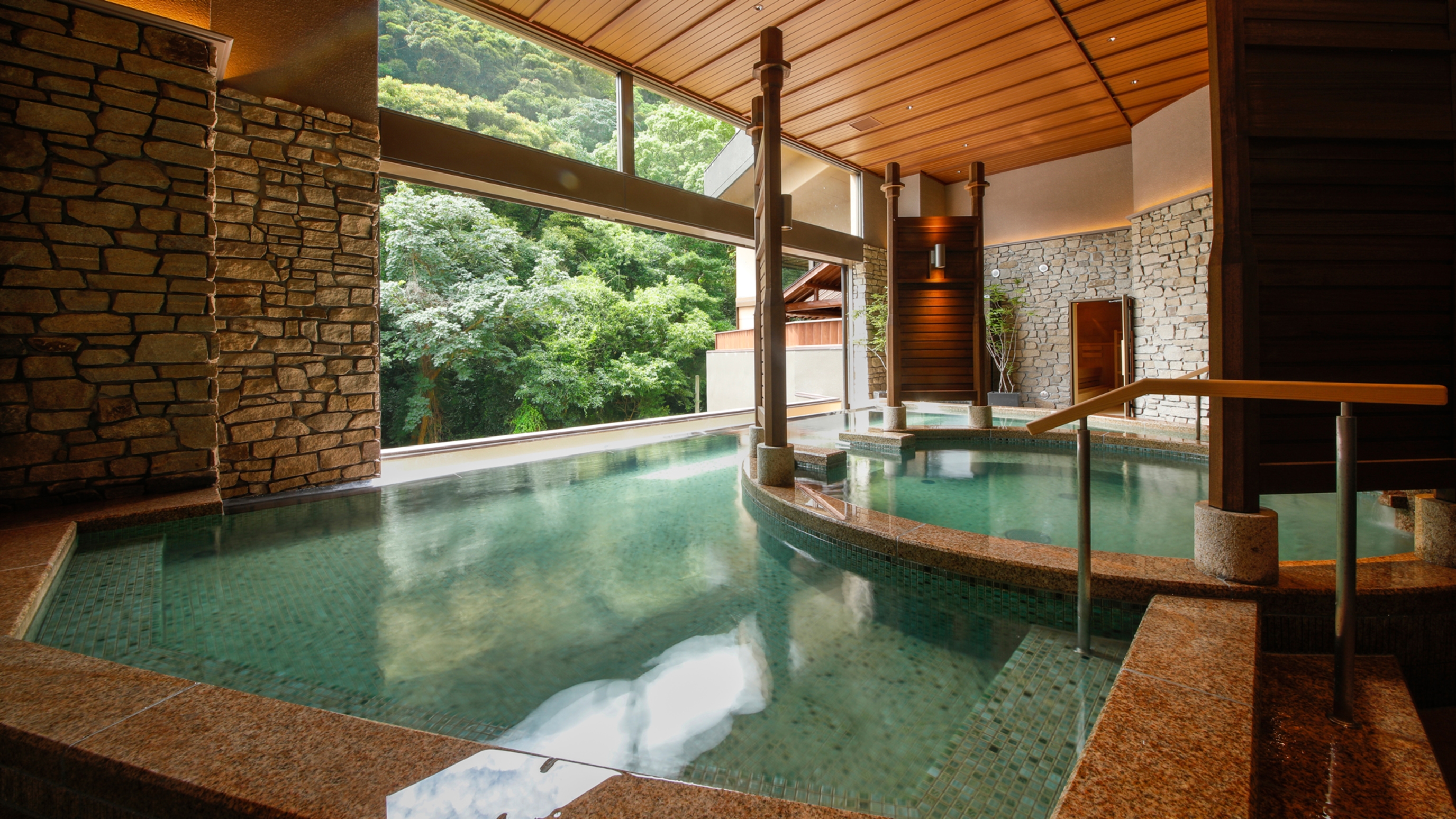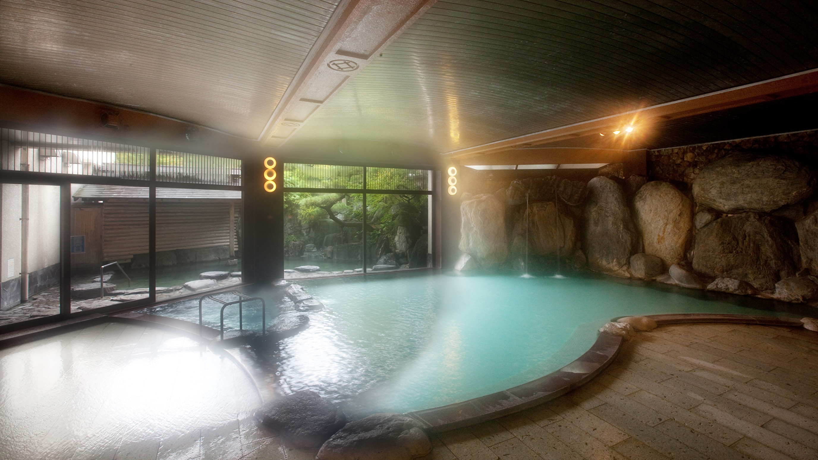 ご入浴は、露天風呂、大浴場、中浴場に加え、貸切風呂も完備。