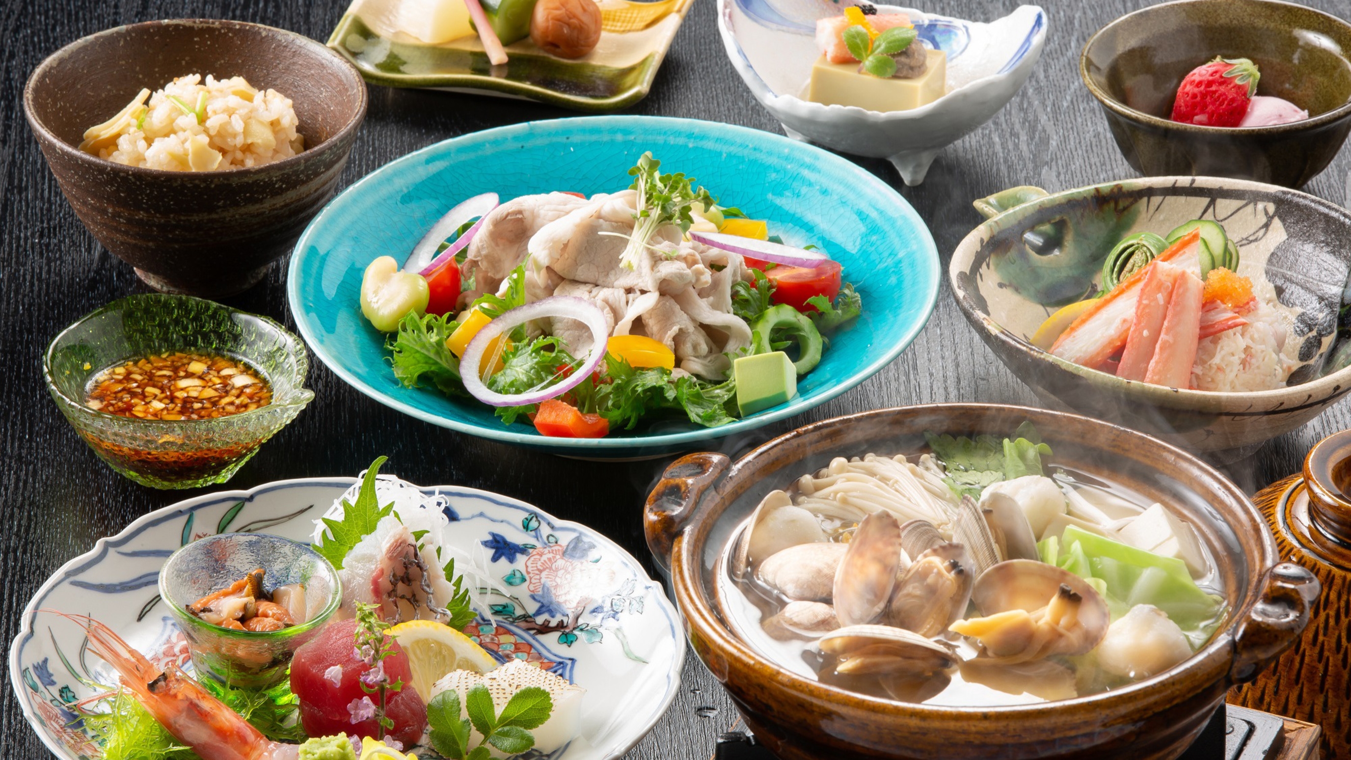 お食事は人気のスタンダード会席の他、新鮮な地の海鮮をメインに高級食材を使用した「紀州会席DX」、量より質にこだわった特選会席「和彩会席」、量にも質にもこだわった最上級贅沢会席などバラエティに富んでいます。