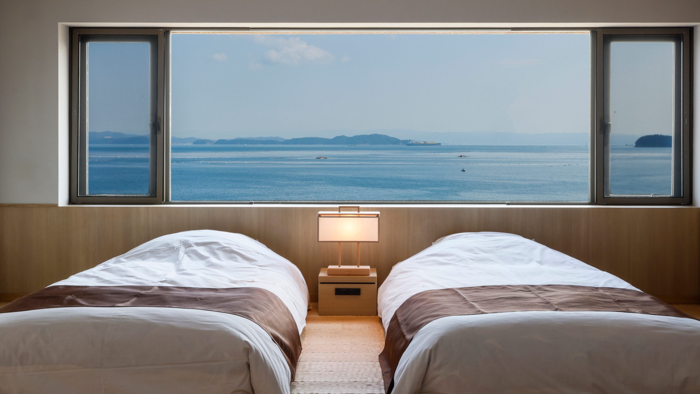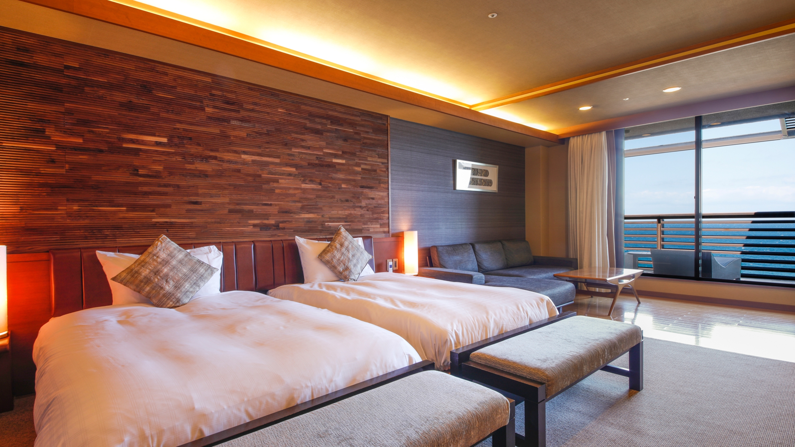 オーシャンビューの客室、温泉付きの客室、和の趣を生かした客室など、豊富な客室を備えます。