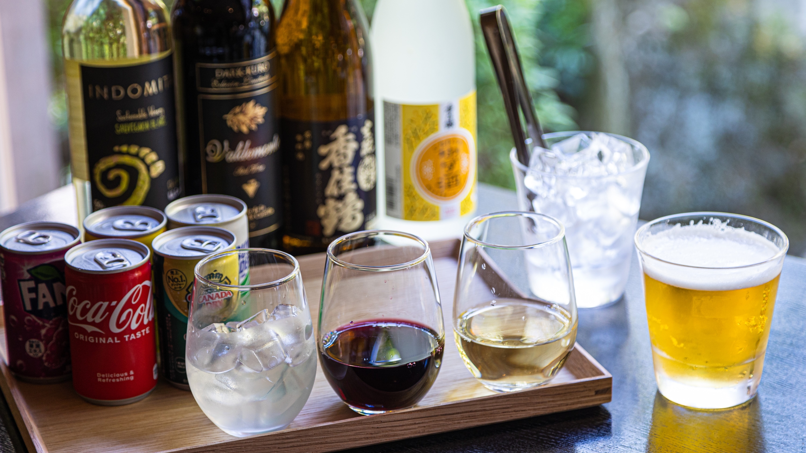 (ビール、地酒、ワイン、コーヒー、紅茶、日本茶、ジュース、湯上がりアイス等)