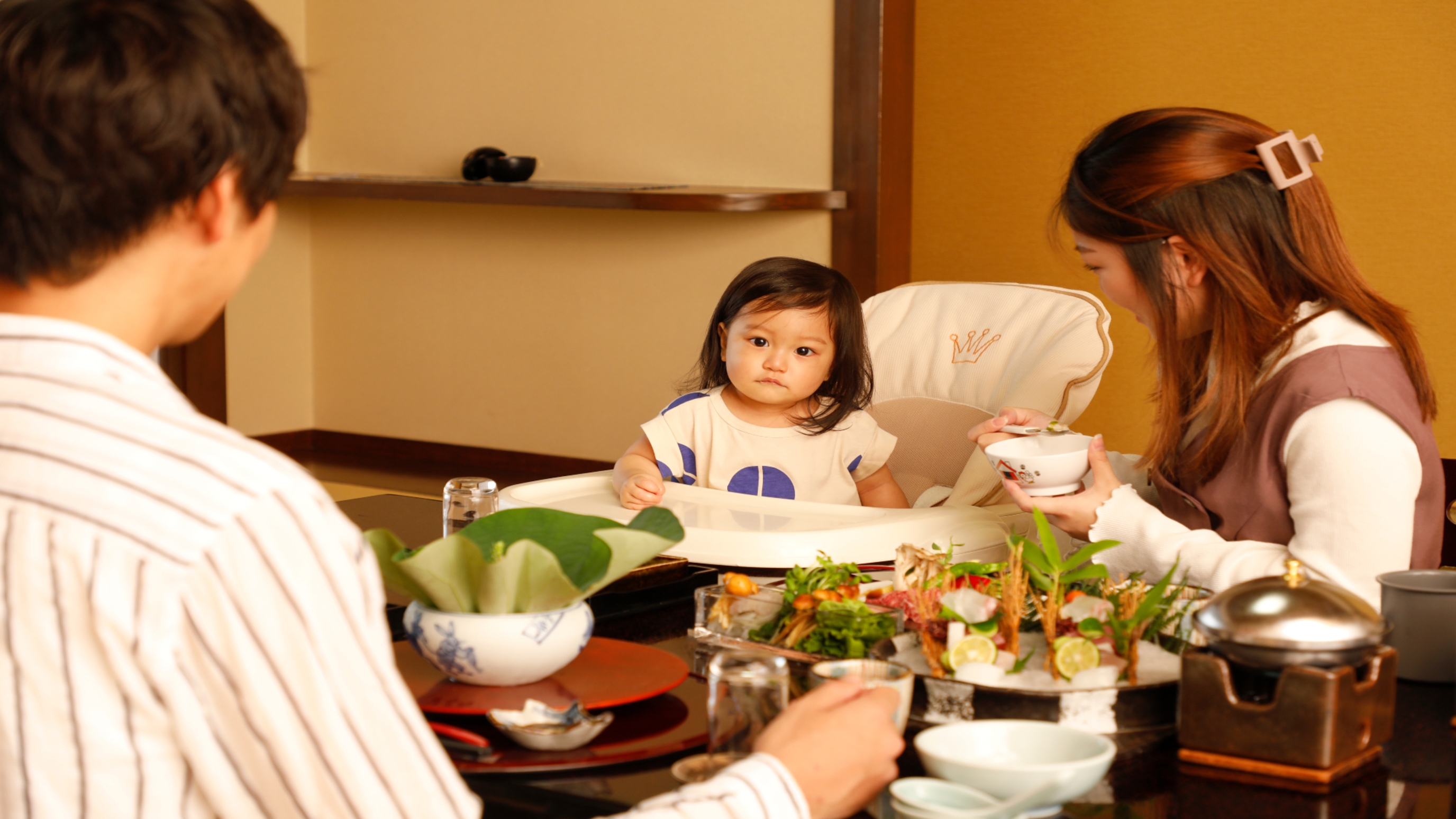 「赤ちゃんプラン」でのお食事は月替わり会席・夕朝お部屋食となります。
