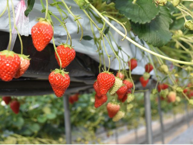ハウス内は2段式高設栽培なので、小さいお子様も大人の方もかがまず楽々いちご狩りができます!