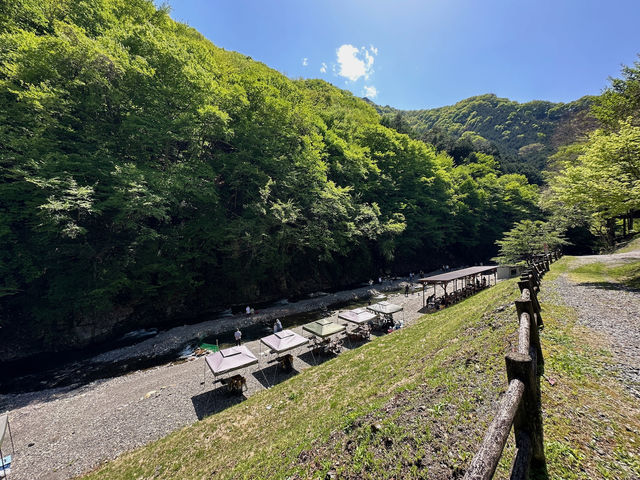 「中津川渓流釣り場」は、釣りをしながら、バーベキューも楽しめる施設。